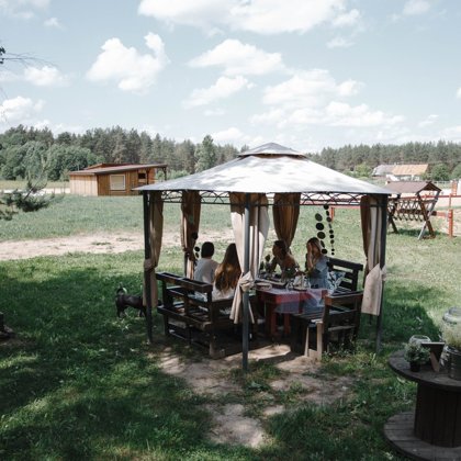 Savo teritorijoje turime įrengę poilsio zoną. Yra lauko baldai, sūpynės, hamakas. Jūsų būvimo laikas neribojamas. Na, o jūsų švenčiančią kompaniją papyldys grakštūs žirgai. Savo šventei galite juos pasirinkti čia: Mūsų žirgai, o jei prireiktų profesionalių fotografų, ar dekoratorių paslaugų- juos galite rasti štai čia: Partneriai.